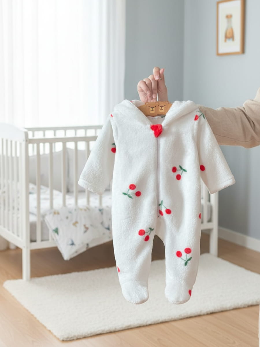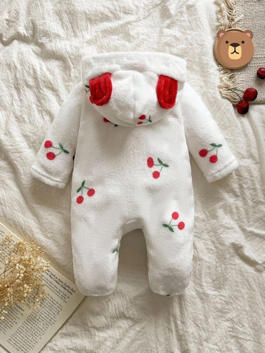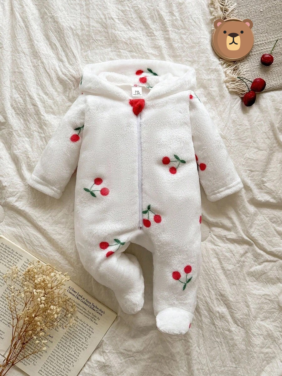 Combinaison polaire douce pour bébé fille à pois, manches longues et capuche, parfaite pour rester bien au chaud en automne et hiver.