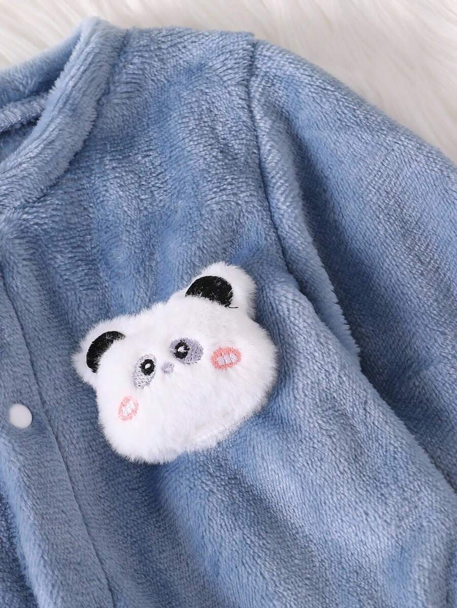 Design adorable : Une couleur bleu ciel apaisante, agrémentée d’un petit panda en relief sur la poitrine et de moufles assorties pour éviter que bébé ne se gratte.