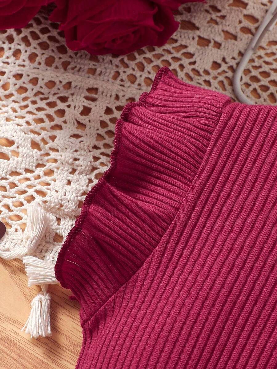 Couleurs élégantes : Un contraste chic entre le rouge bordeaux profond du haut et le rose poudré délicat du tulle.