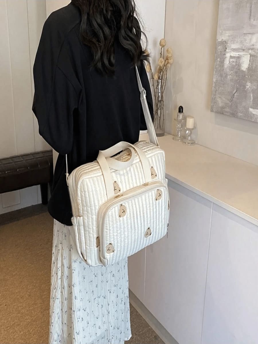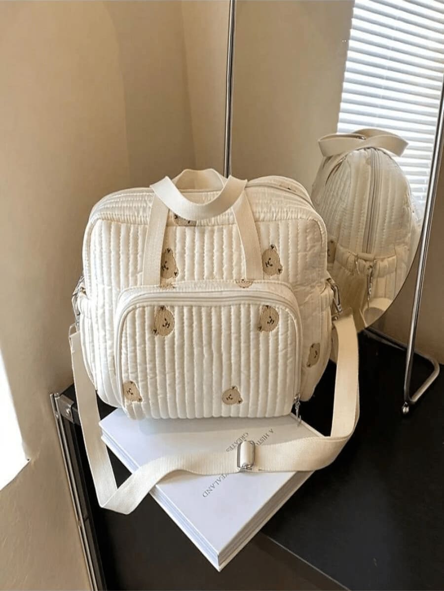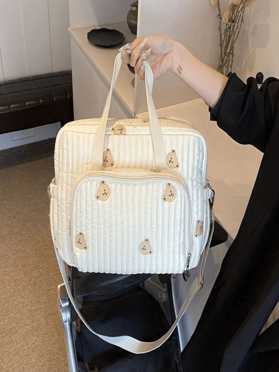 Design adorable : Décoré de délicats motifs d’ours brodés sur l’ensemble du sac pour une touche enfantine et raffinée.