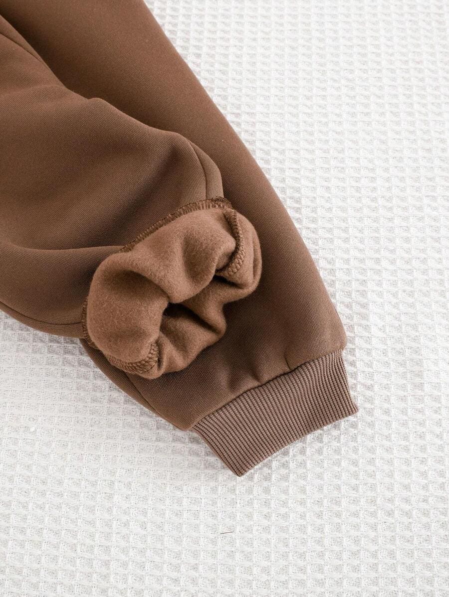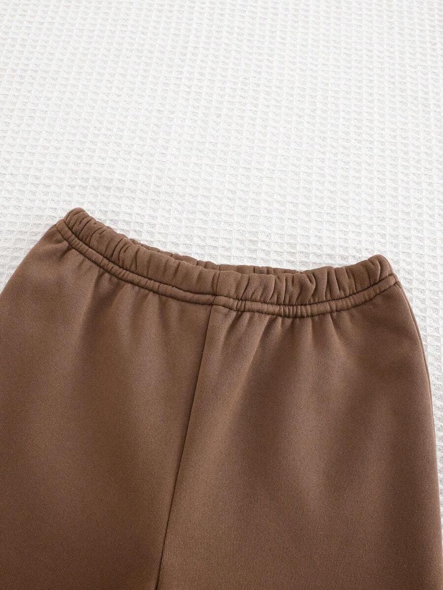 Bas : Pantalon de jogging marron chocolat avec taille et chevilles élastiquées pour un ajustement parfait sans être trop serré.