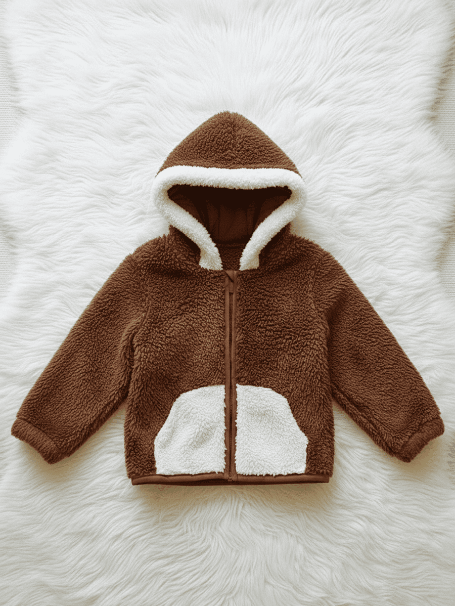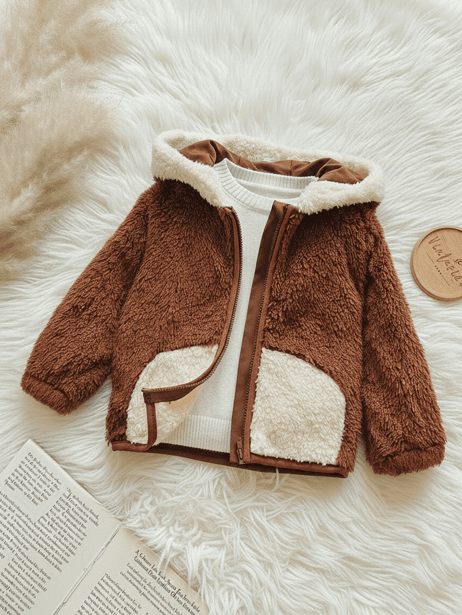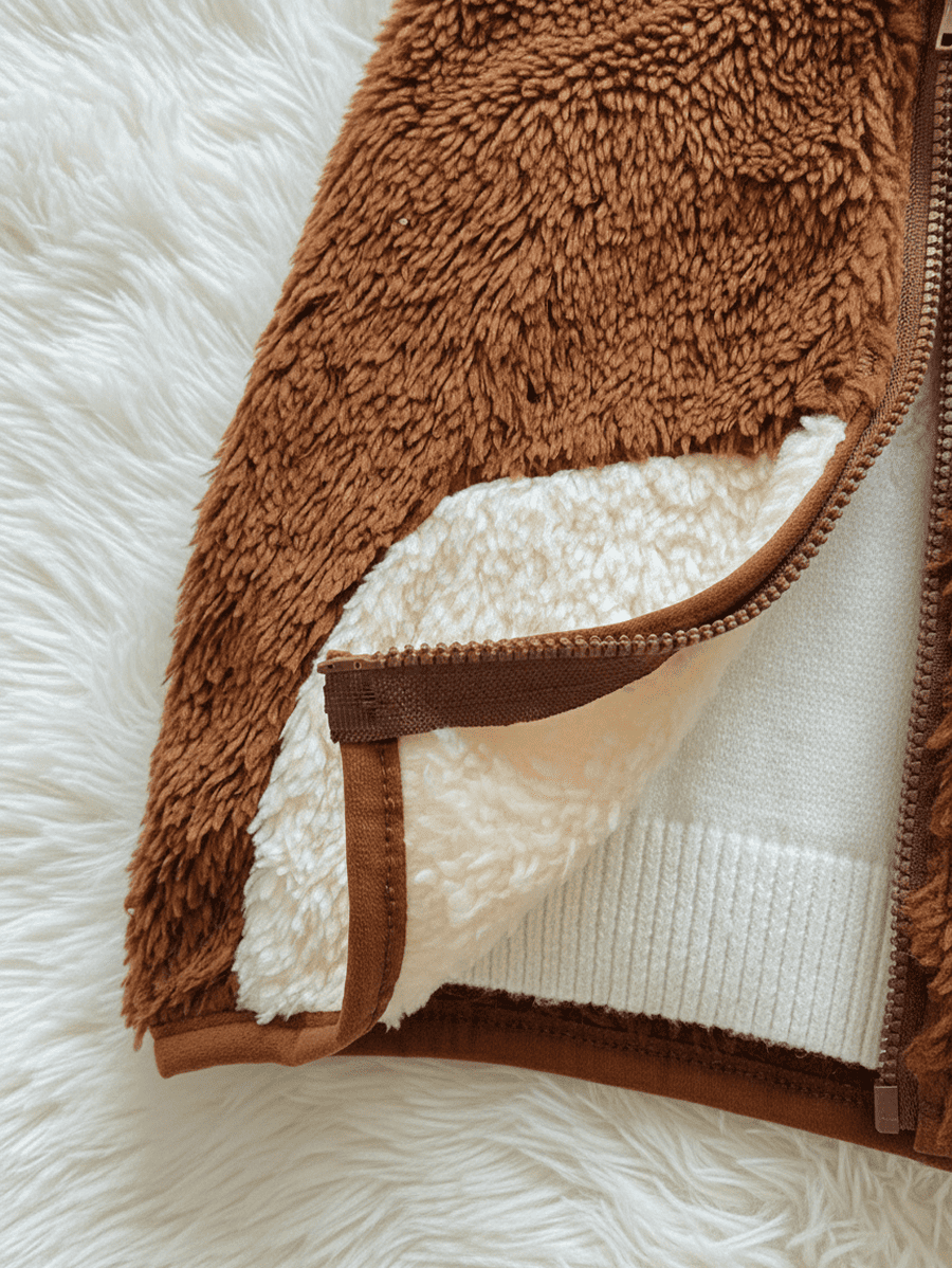 Offrez un véritable cocon de douceur à votre enfant avec cette veste zippée en maille pelucheuse, idéale pour affronter les journées fraîches avec un style « ourson » irrésistible.