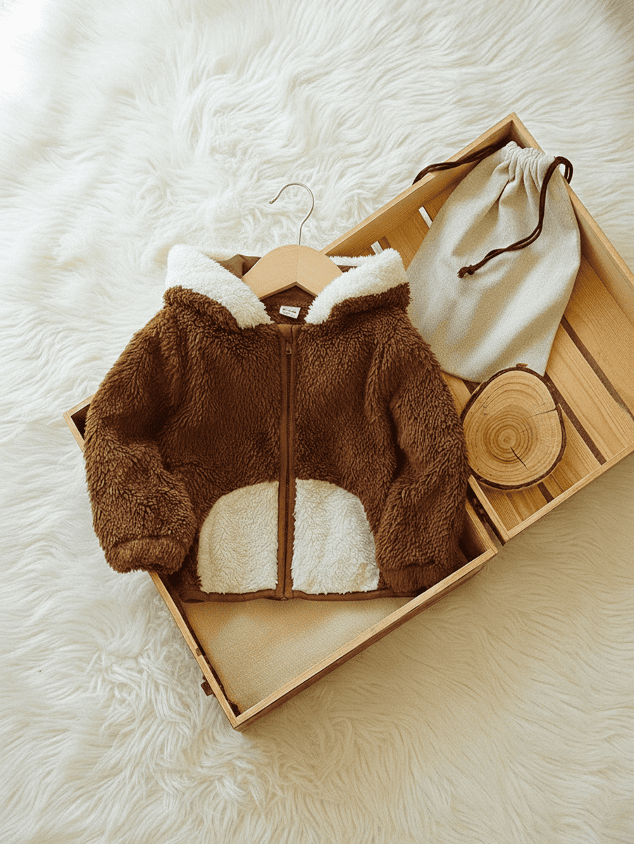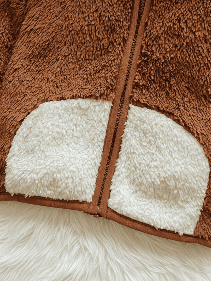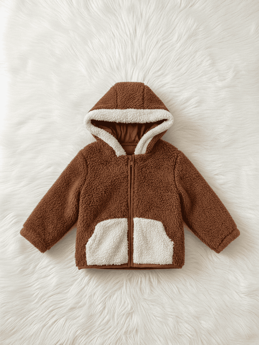 Offrez un véritable cocon de douceur à votre enfant avec cette veste zippée en maille pelucheuse, idéale pour affronter les journées fraîches avec un style « ourson » irrésistible.